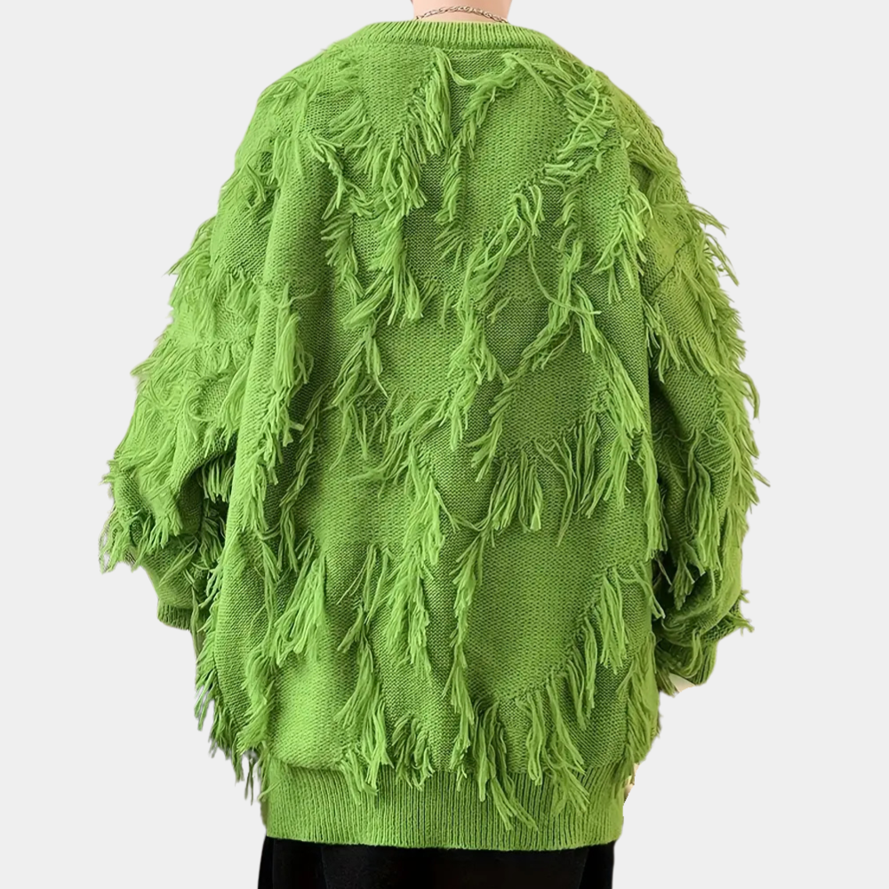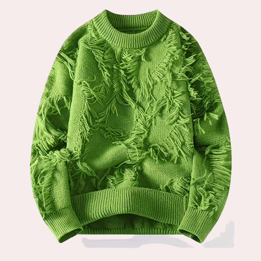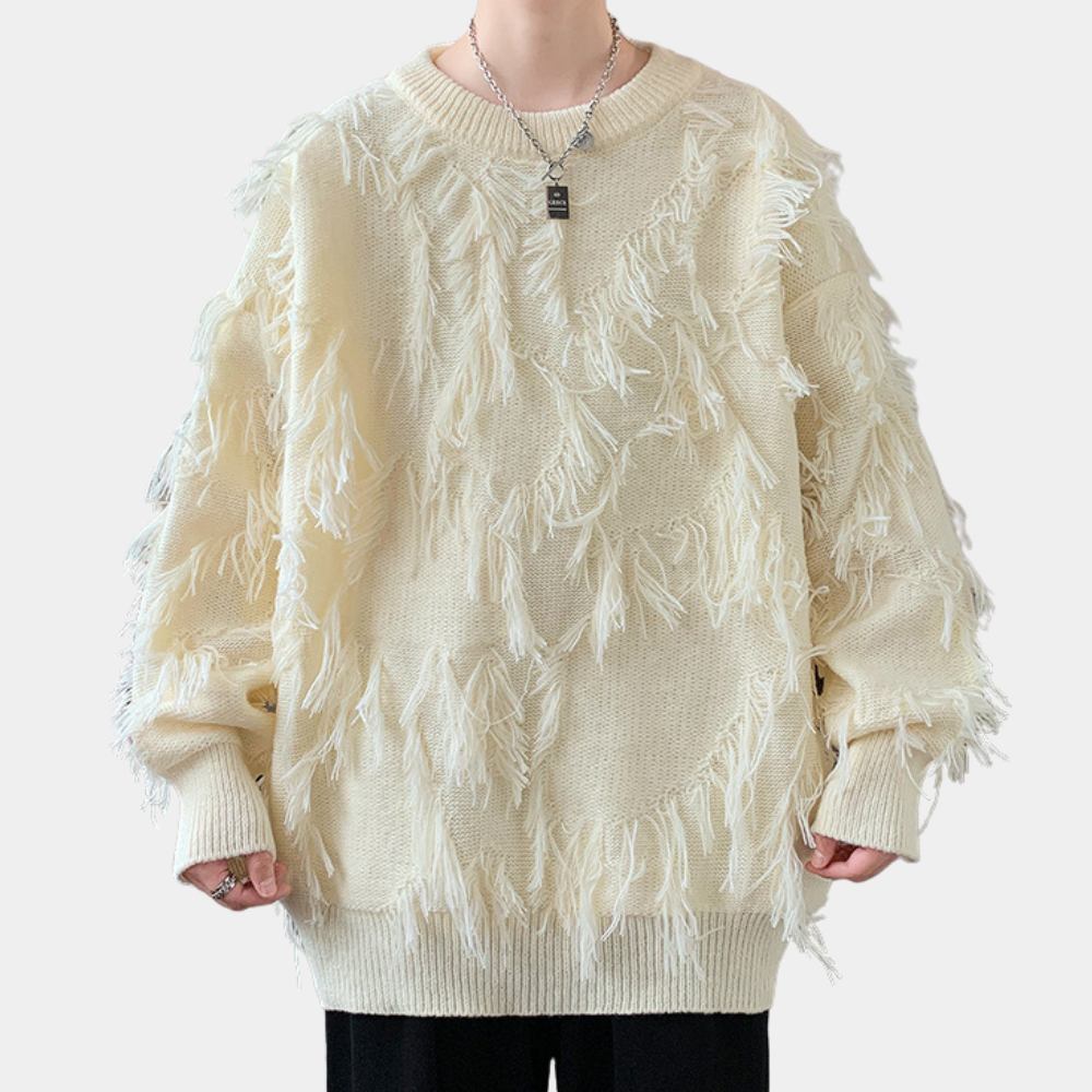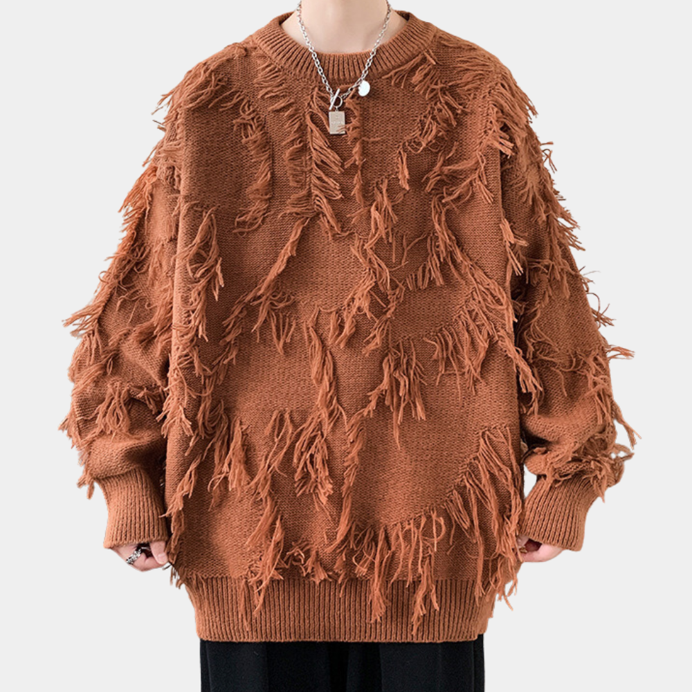 EDVIN - Moderne Frynse Strikketgenser for Menn kombinerer individuell smak med eleganse og gir et friskt pust til klesskapet ditt. Med sine særegne frynser og behagelige passform, er denne genseren ideell for å løfte antrekket ditt, enten det er til uformelle anledninger eller mer elegante sammenkomster.