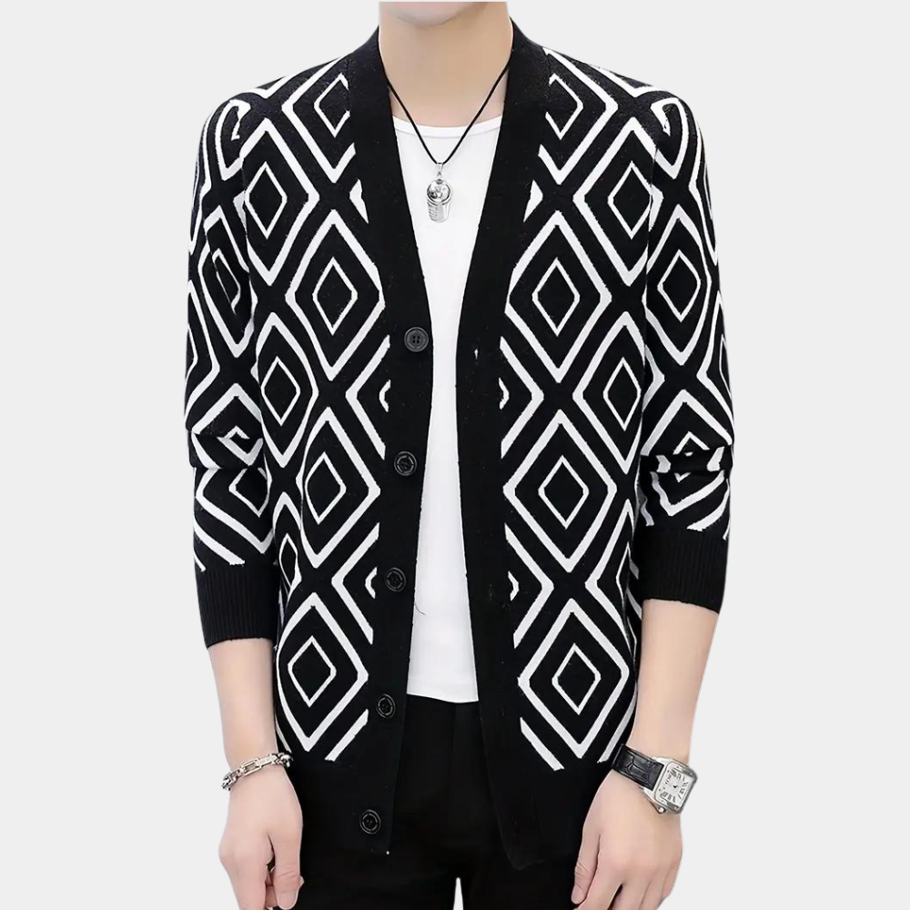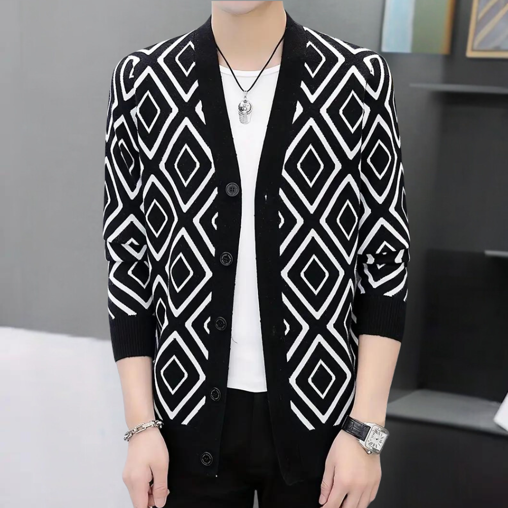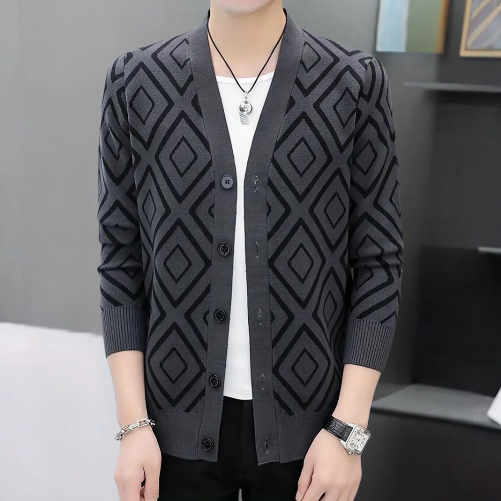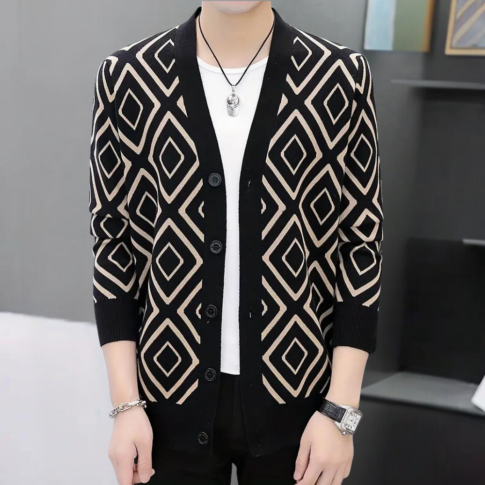 JACK - Sofistikert Cardigan for Menn er spesialdesignet for å tilføre et moderne og raffinert preg til garderoben din. Laget av førsteklasses materialer, gir denne cardiganen både komfort og stil, og den er perfekt for å ha over skjorter eller kombinere med avslappede bukser for et gjennomført utseende.