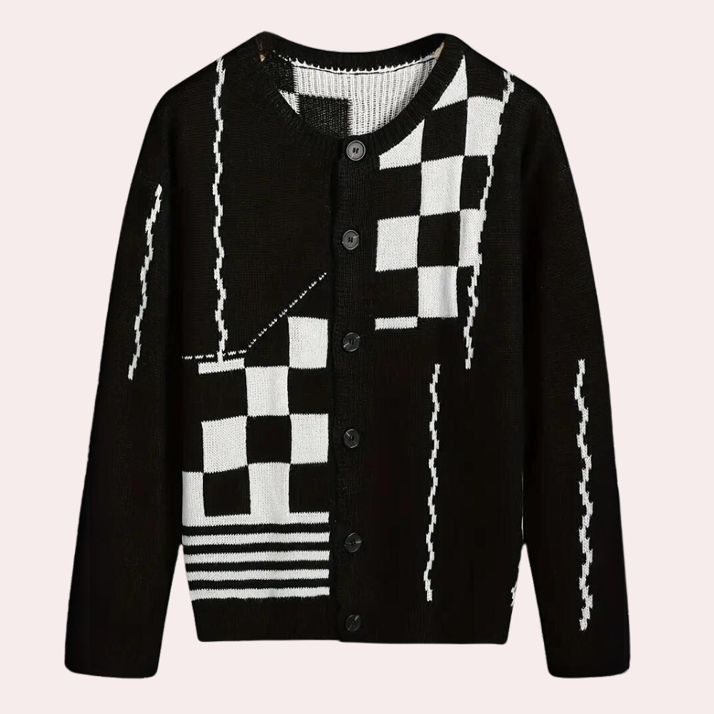 KEION - Strikket Kardigan for Menn er den perfekte løsningen for deg som ønsker en balanse mellom stil og komfort. Denne kardiganen tilfører et snev av eleganse i din daglige garderobe, og kombinerer håndverk av høy kvalitet med en moderne vri. Den er ideell for lag-på-lag styling eller for å gi et polert preg til dine uformelle antrekk, og blir en uunnværlig del av garderoben din sesong etter sesong.