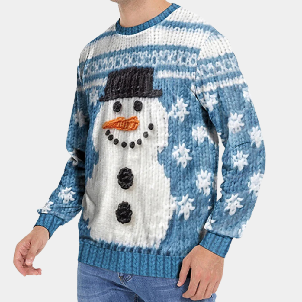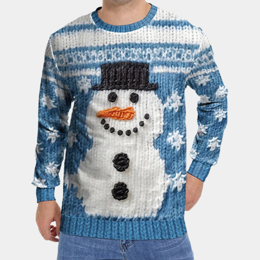 SAMSON - Strikket Snømann Julegenser for Menn kombinerer leken juleglede med enestående komfort. Denne genseren er perfekt til familiære sammenkomster, kontorfester eller festlige utflukter, og sikrer at du holder deg varm og stilfull mens du feirer sesongen.