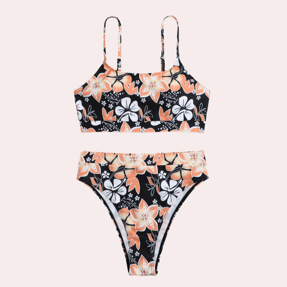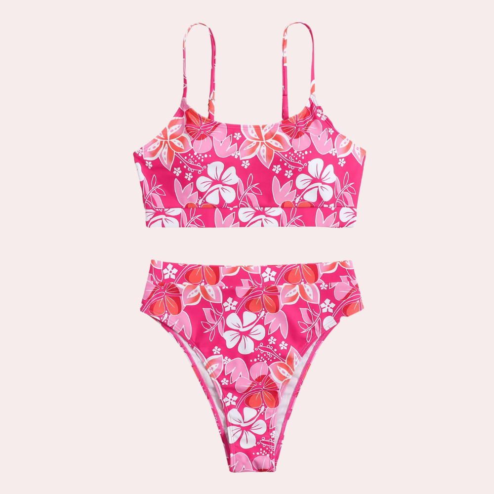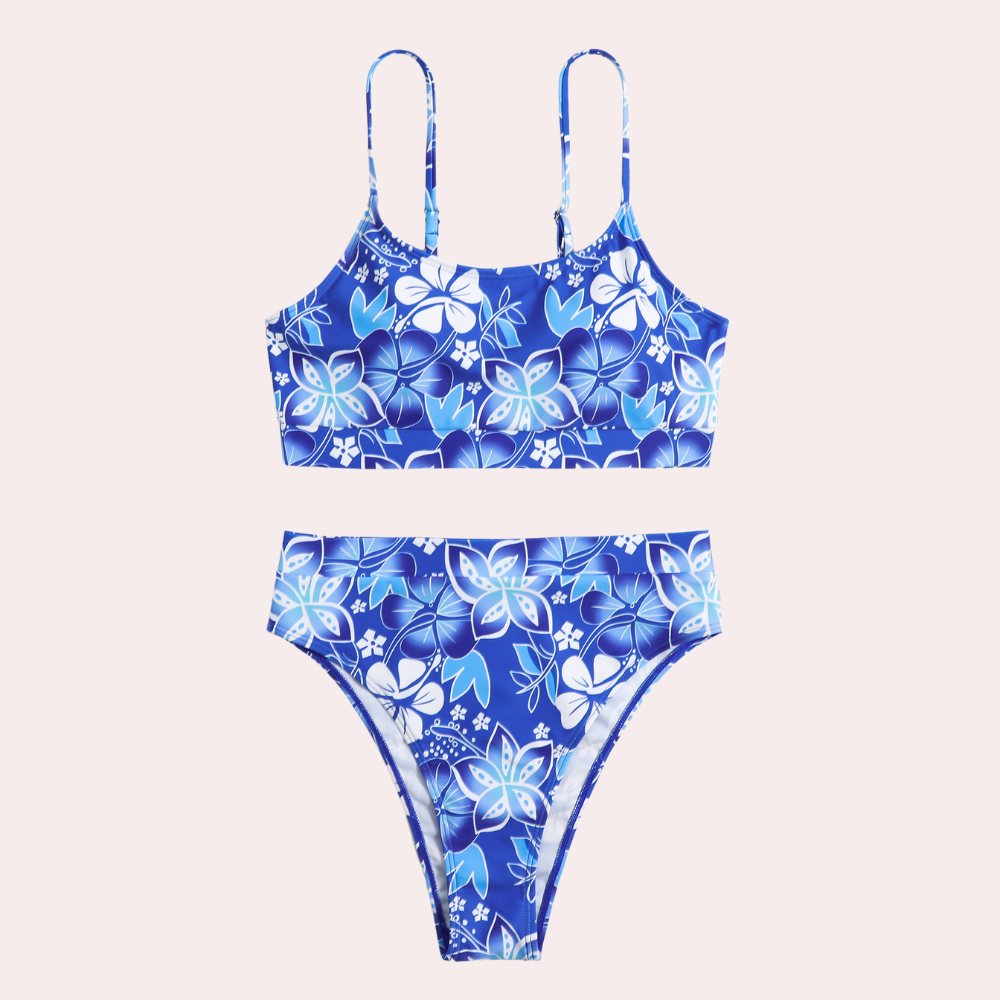 Dykk ned i paradiset med vårt Imanta Bikinisett med tropisk trykk for kvinner, et fantastisk ensemble som bringer tropisk skjønnhet til badetøykolleksjonen din. Dette fengslende bikinisettet har et livlig tropisk trykk som minner om solfylte strender og palmekransede kyster. Det er laget av elastisk stoff av høy kvalitet, noe som sikrer komfort og holdbarhet hele dagen. Dette bikinisettet er perfekt for avslapping ved bassenget eller for å utforske reisemål, og får deg til å føle deg som om du er på permanent ferie.