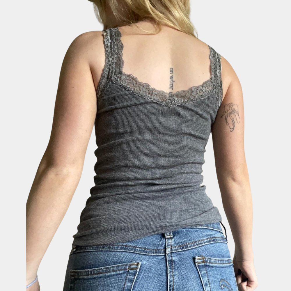 Denne Avslappet linnetopp med blondekant for kvinner er perfekt for uformelle dager. Den er laget av en myk og pustende innfelt stripe som er svært behagelig å ha på. Den figursydde silhuetten fremhever kurvene dine og skaper en feminin look. Med behagelige blondedetaljer på skulderstroppene og i utringningen tilfører den et retro- og Y2K-look til ethvert antrekk.