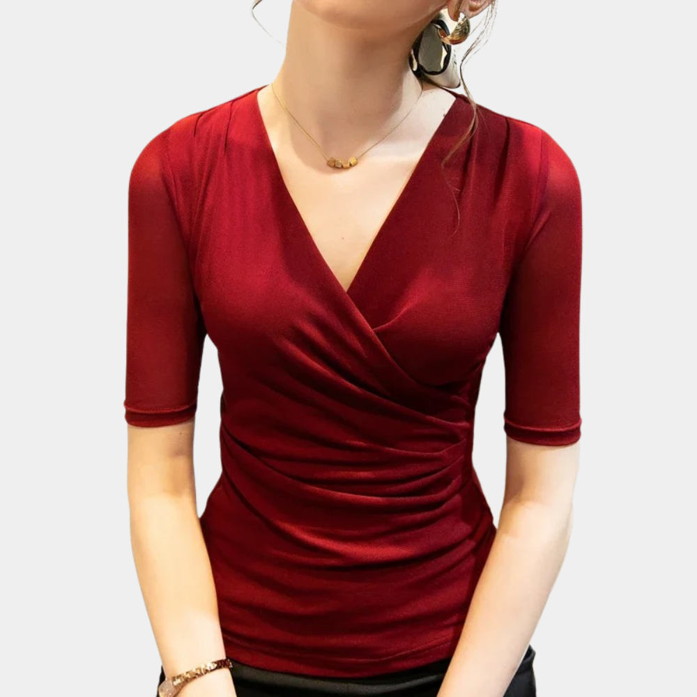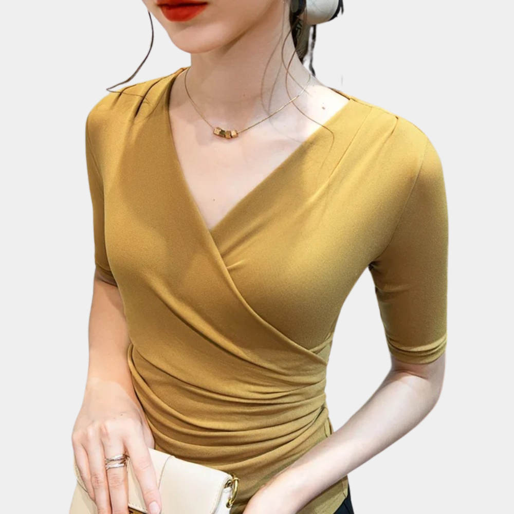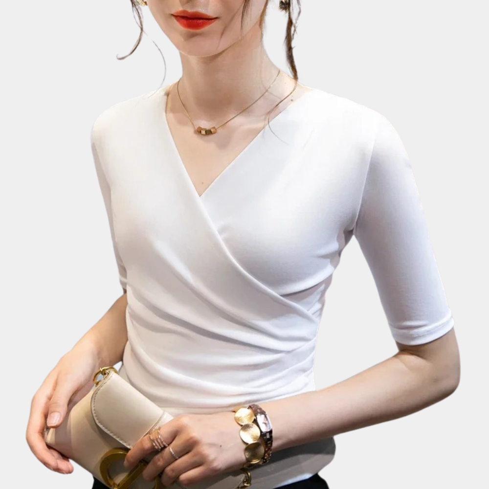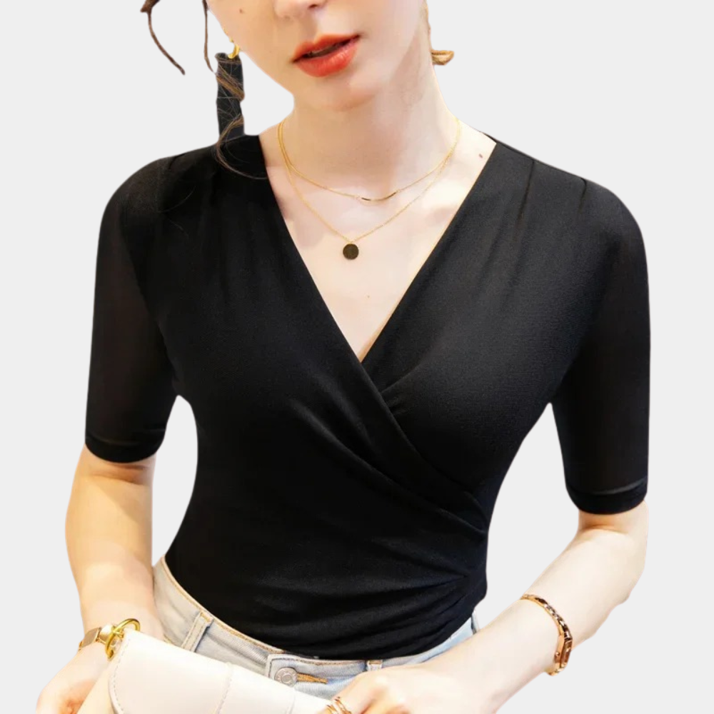Spennende topp med V-hals og halvlange ermer, perfekt for vår- og sommermånedene.