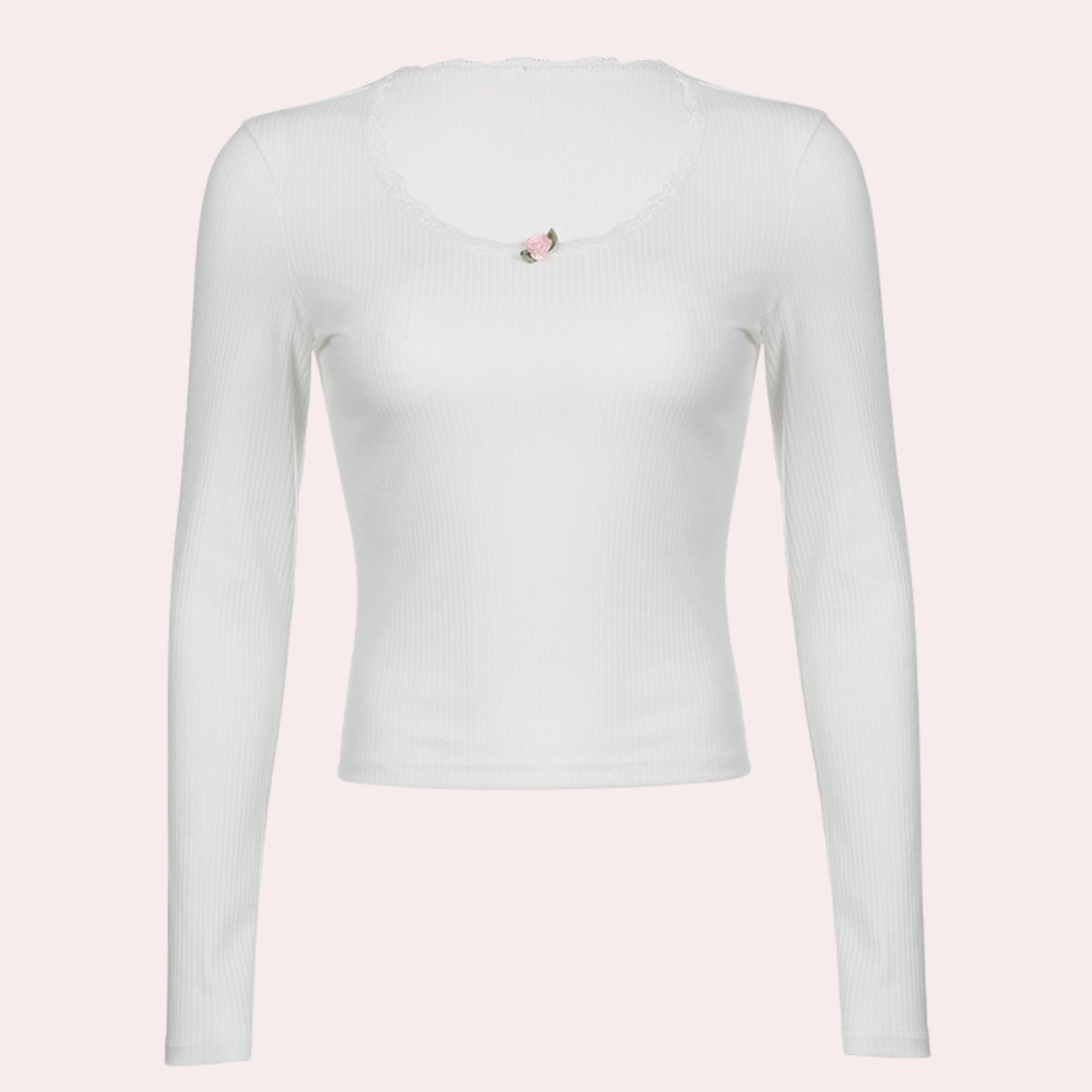 Piff opp høstgarderoben din med denne trendy Klassisk langermet topp for kvinner. Den delikate blondekanten gir et feminint preg, mens det utsmykkede blomstermønsteret tilfører sjarm. Perfekt både til å kle opp og kle ned.