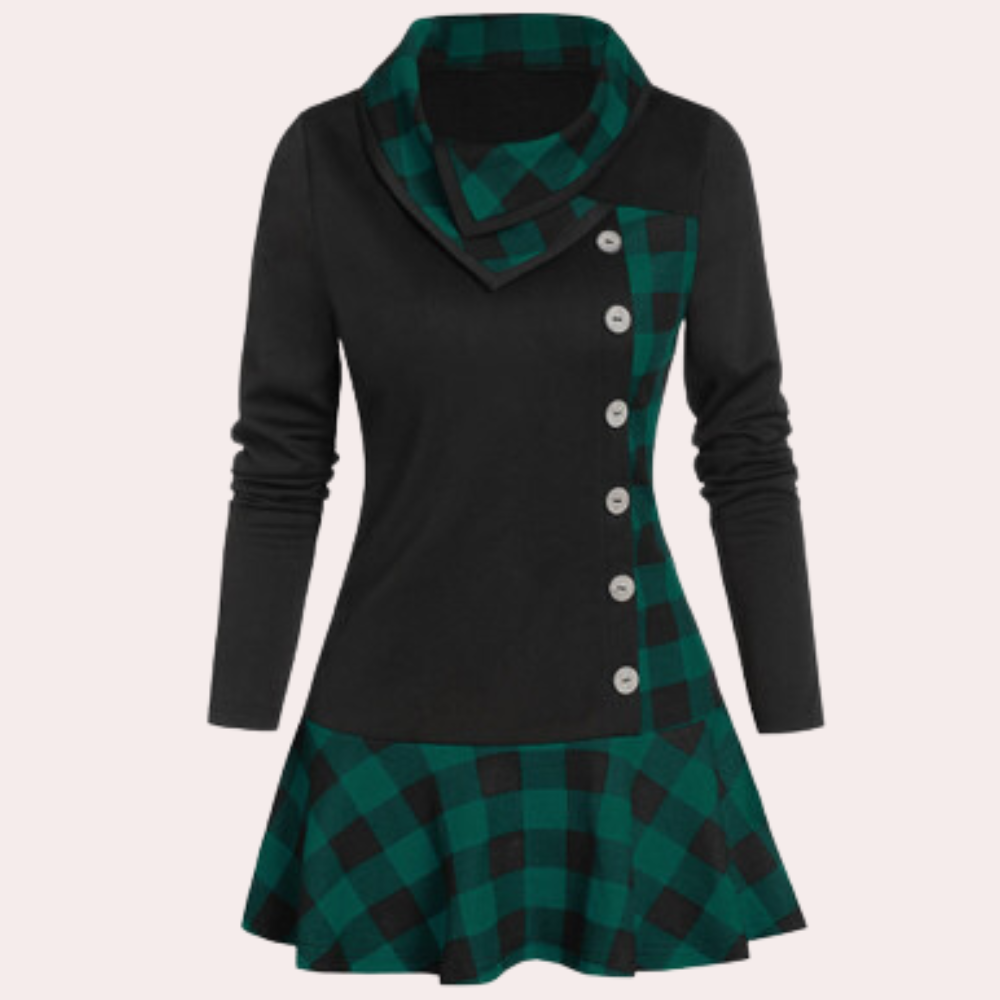 Sjekk ut vår Niki Stilig kjole med rutete mønster. Denne kjolen er veldig behagelig og stilig å ha på seg når du går ut. Kjolen er laget av pustende og behagelig stoff og er ideell for vår og sommer.