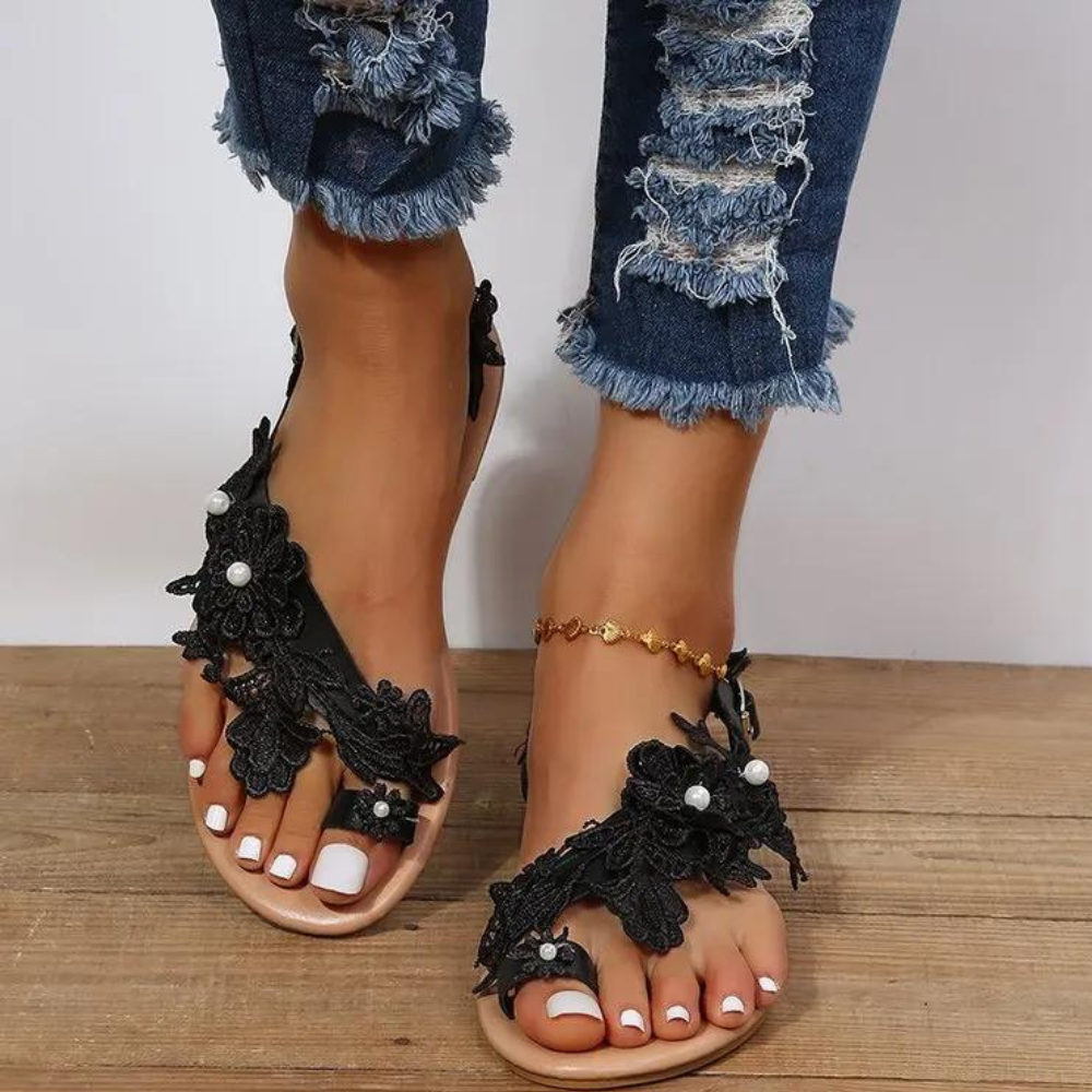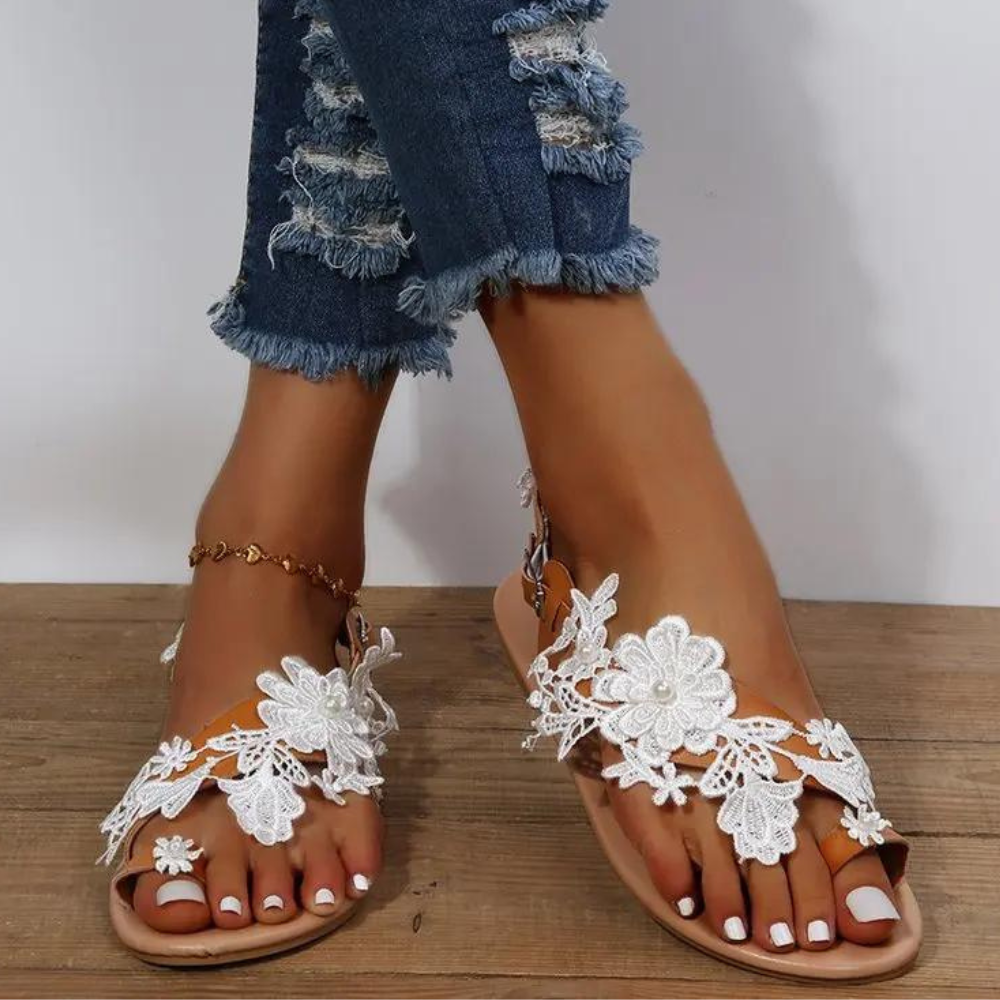 Opplev stil og komfort med Calliope Damesandaler med delikat blomstrete blonder!