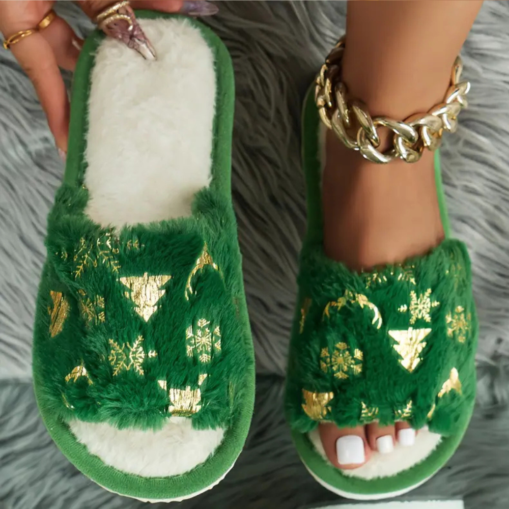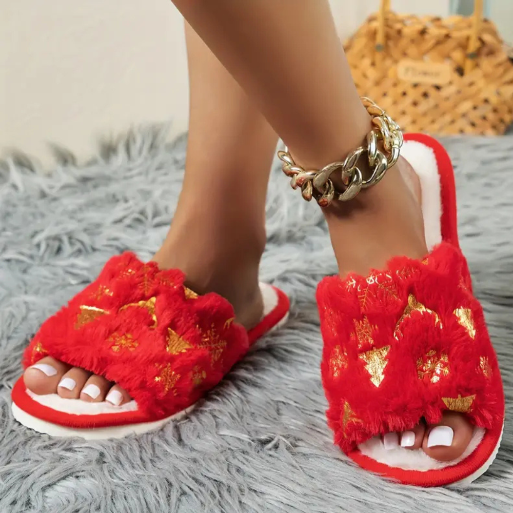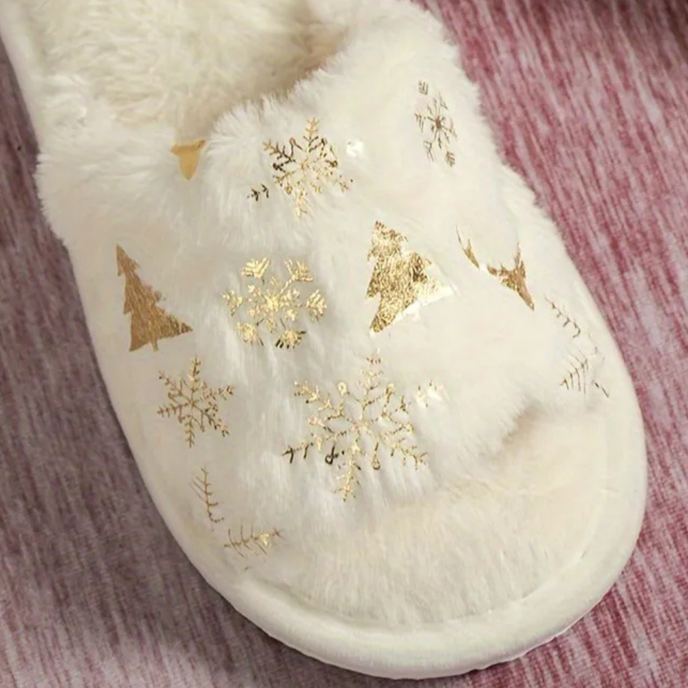 GABBIE - Fluffig Jule Tøfler for Damer kombinerer varme og stil på en perfekt måte. Med sitt sjarmerende design inspirert av julen, gjør disse tøflene avslapning hjemme enda mer spesiell i løpet av den festlige sesongen.