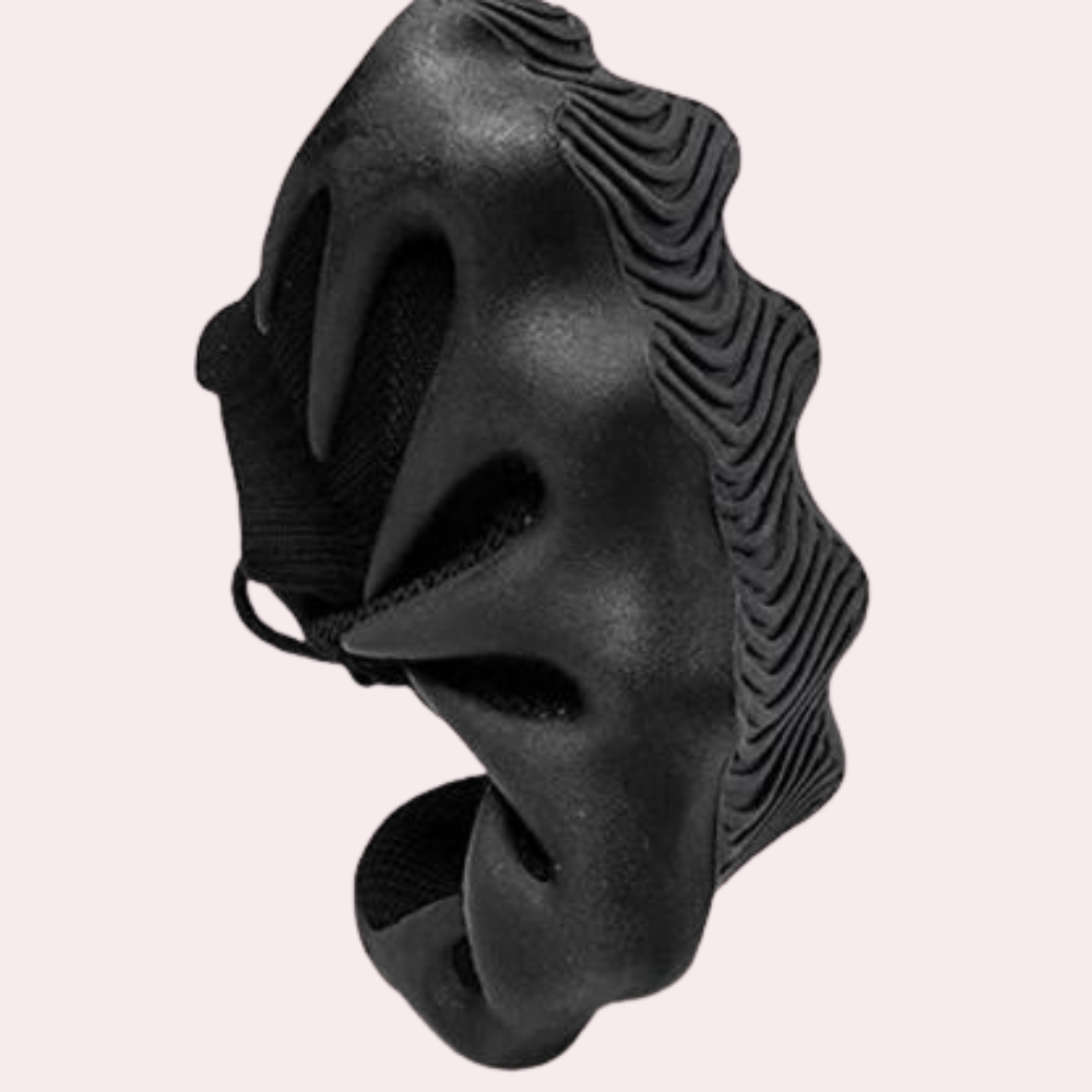 Svart joggesko med bølgete såle, moderne design. Komfortabel og stilig fottøy for trening og hverdagsbruk. Trendy sneakers for kvinner.